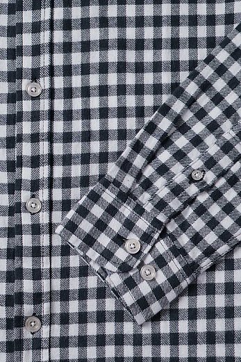 Рубашка оснащена длинными рукавами на плотных манжетах, что позволяет носить ее без верхней одежды даже в прохладную погоду. Отложной воротник не натирает и не давит, а наличие накладного кармана добавляет изюминку.