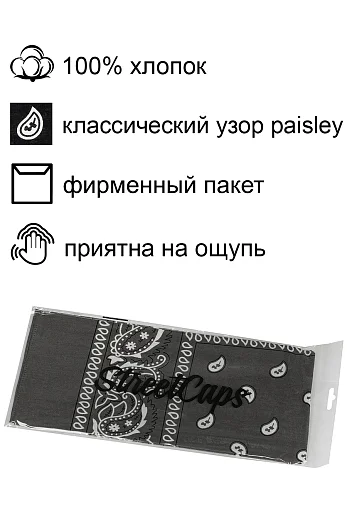 Каждая бандана упакована в индивидуальный фирменный пакет, что делает ее отличным подарком для друзей и близких.
