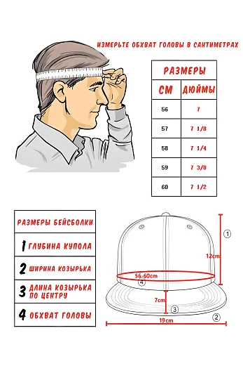 ОПИСАНИЕ: Флагманская модель бейсболки. У этой модели прямой козырек, а размер указывается в дюймах.