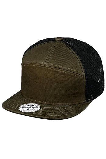 ОПИСАНИЕ: 7 Panel Trucker Cotton Twill & Mesh Snapback Cap оригинальная двухцветная семипанельная хлопковая бейсболка Street Soul с сеткой. Основа - семь сшитых хлопковых панелей. За счёт большой площади фронтальной панели отлично подходит для вышивки и нанесения большого размера.