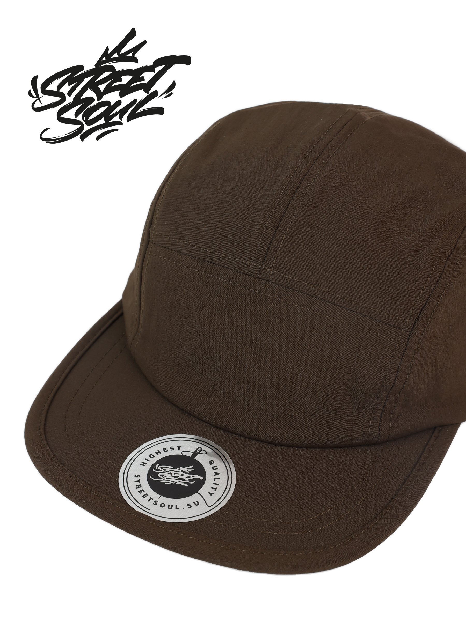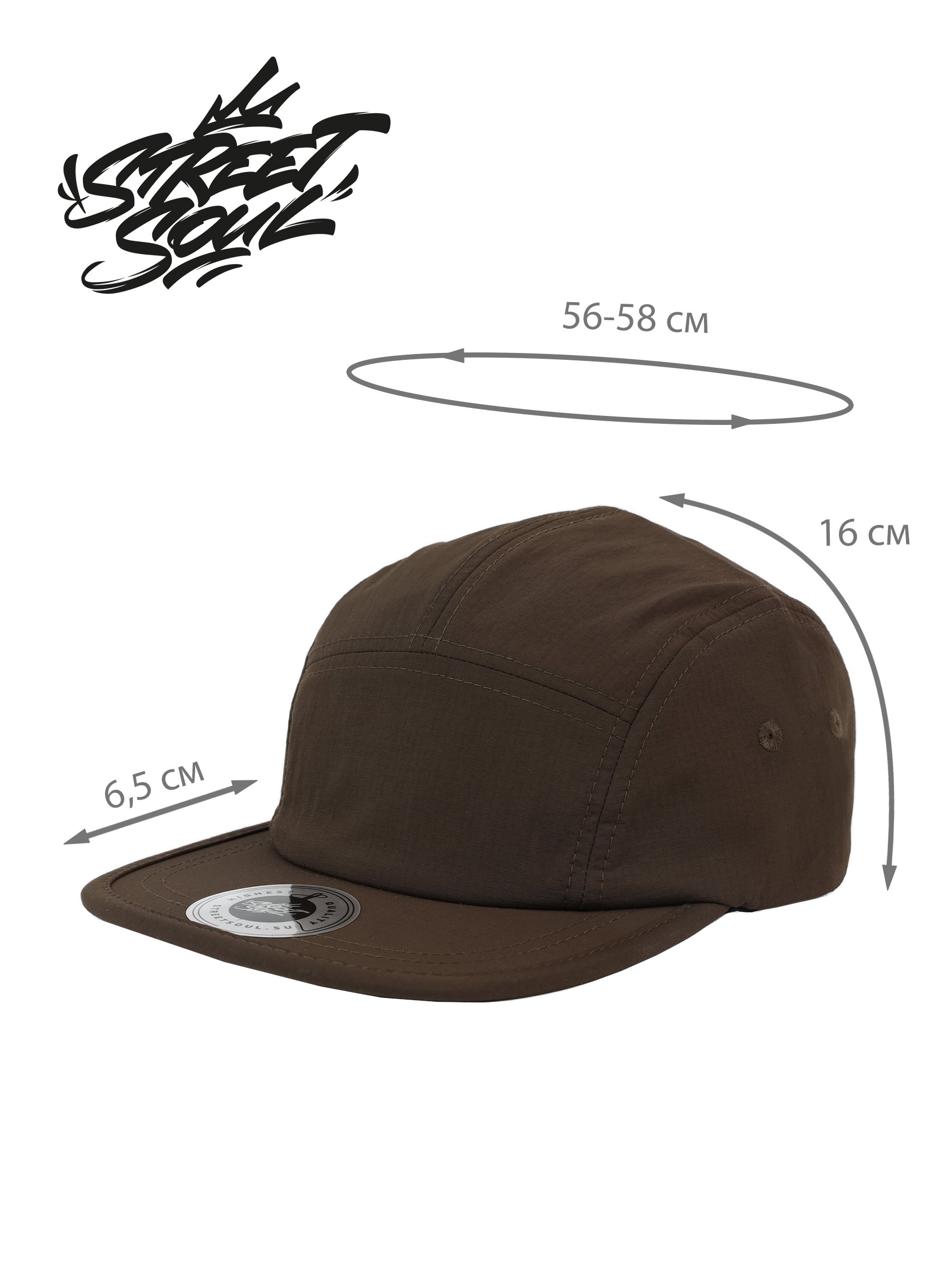 ОПИСАНИЕ: Темно-коричневая кепка пятипанелька Street Soul Модель 902 (водоотталкивающая)